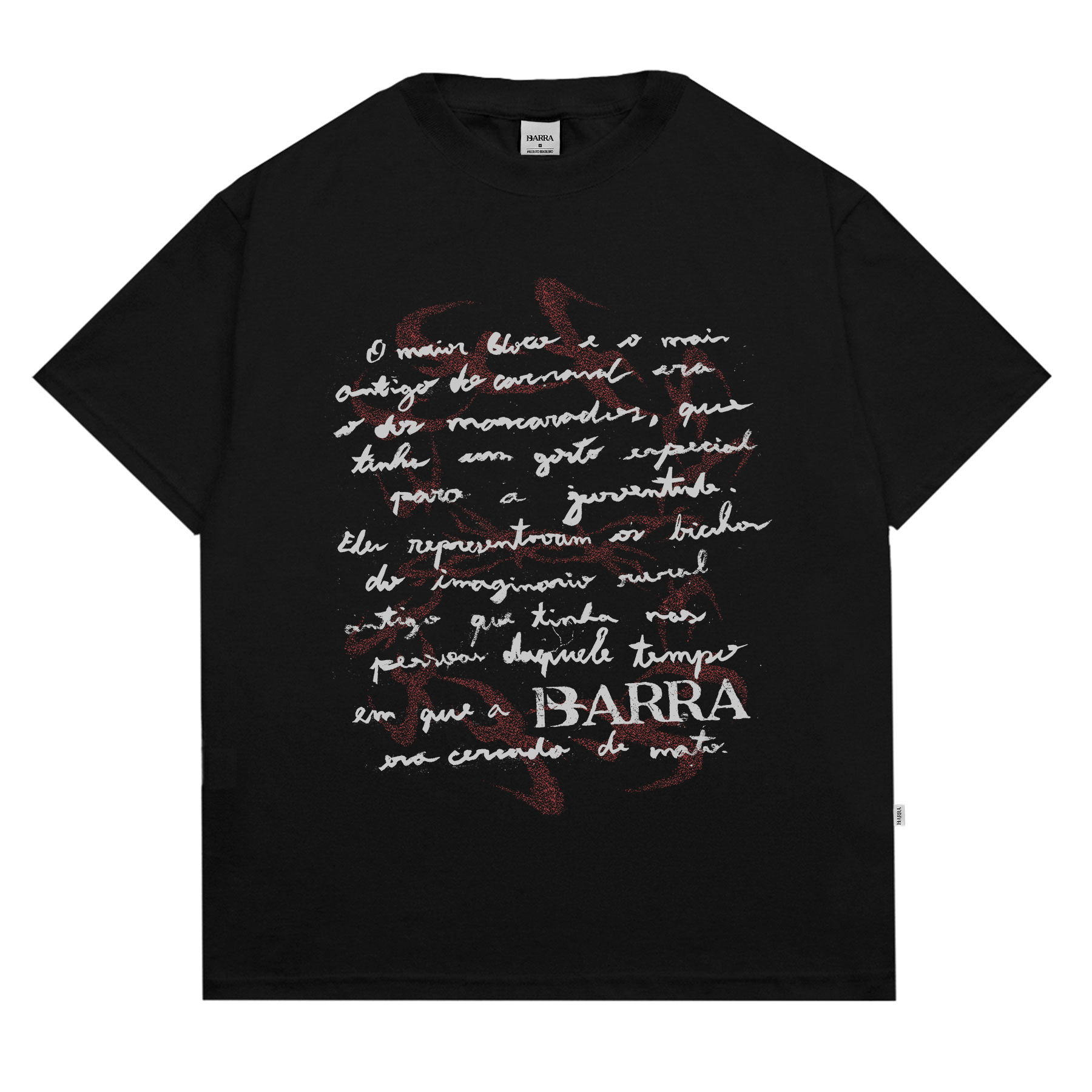 Camiseta com arte feita a mão que se inspira nas linhas do livro ‘’A HISTÓRIA DA