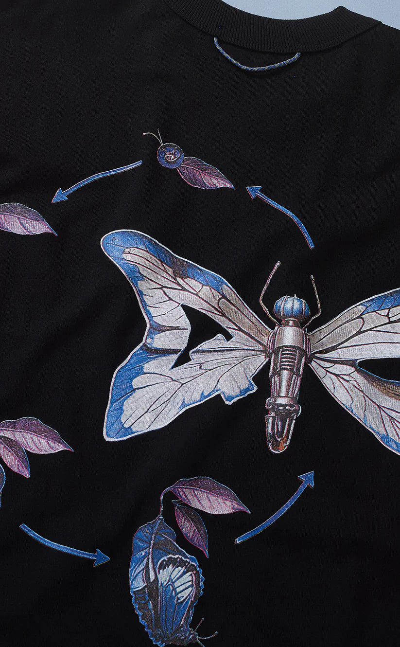 Como parte da linha Blue Label, esta camiseta de modelagem boxy com gola careca é feita em algodão pesado e macio. Arte "Metamorfose" estampada em alta definição na parte frontal e costas da peça, com Cordelete® Quadro Creations aplicado na nuca.