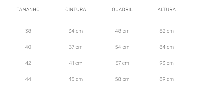 Tabela de medidas